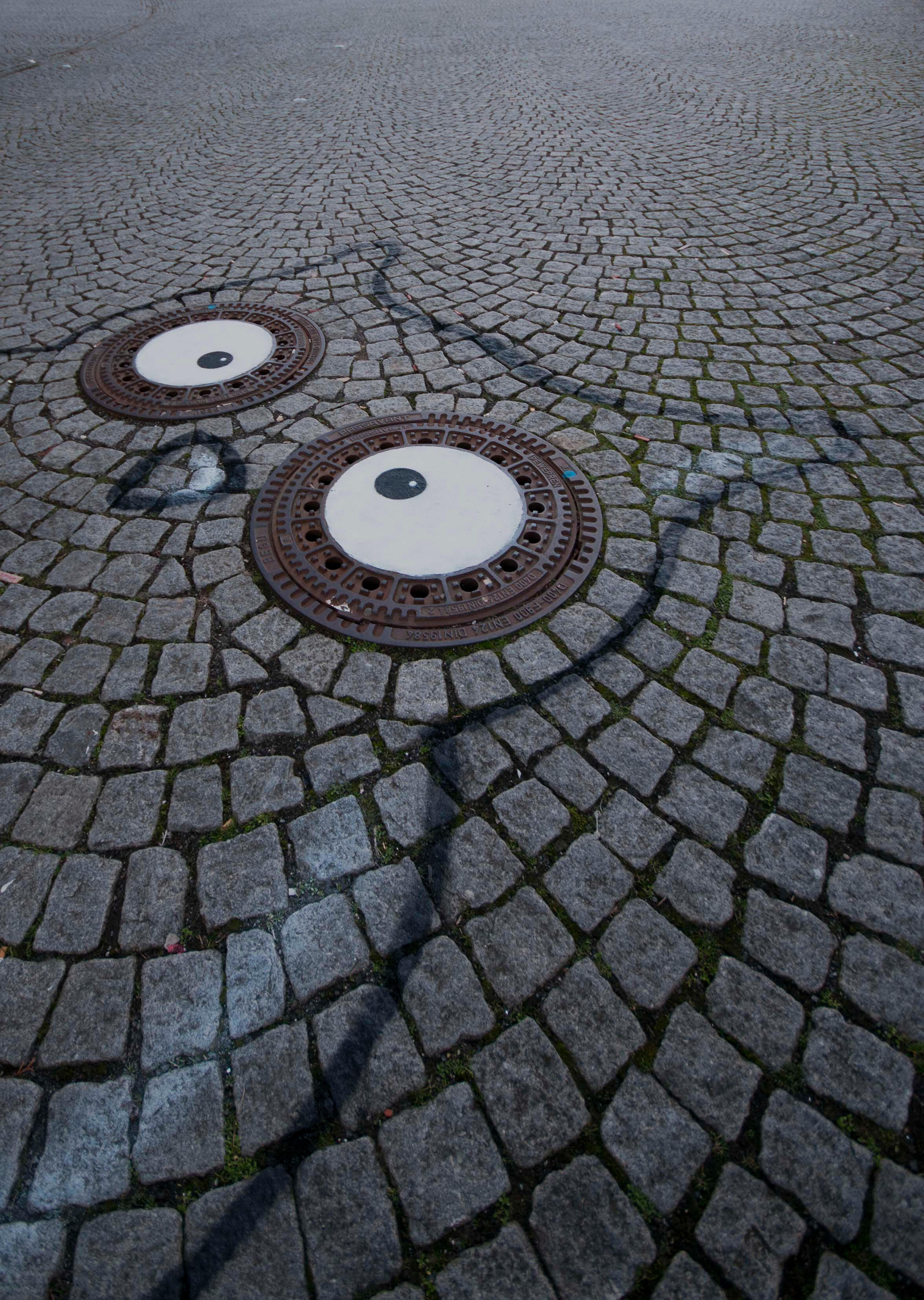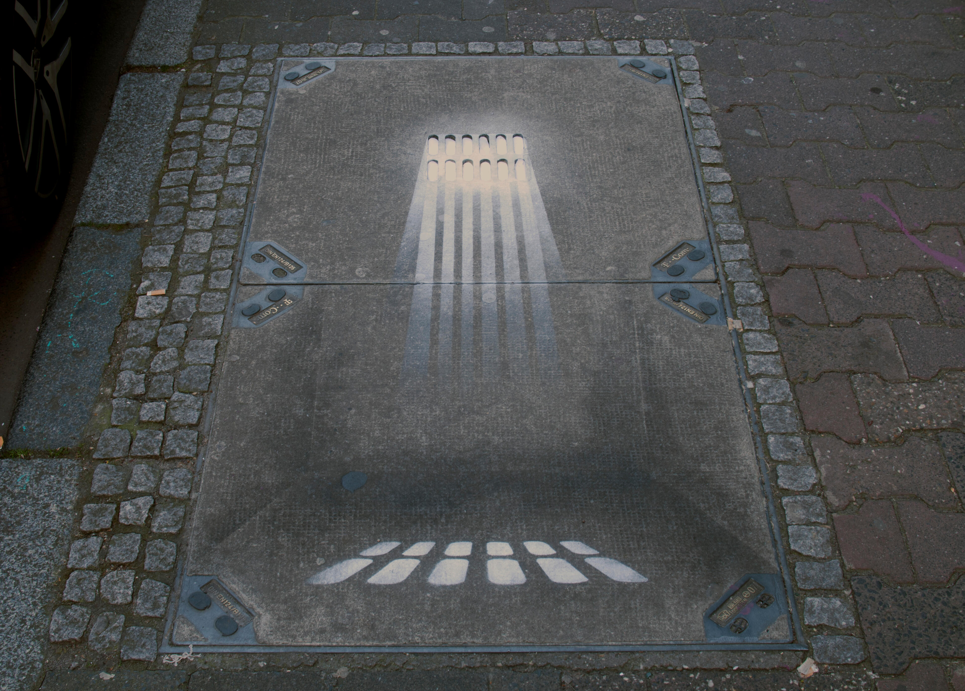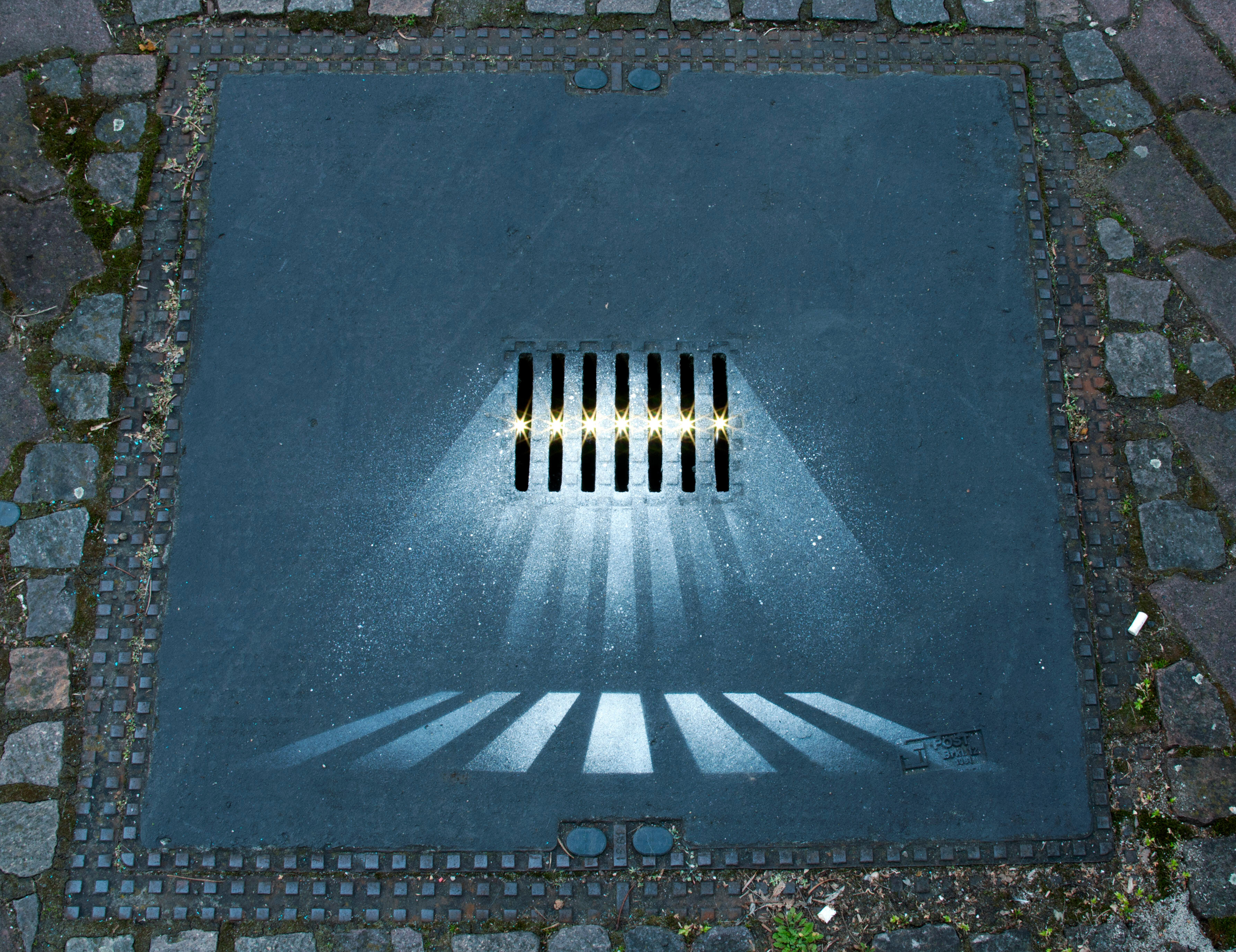 Series of modified manholecovers in public space.