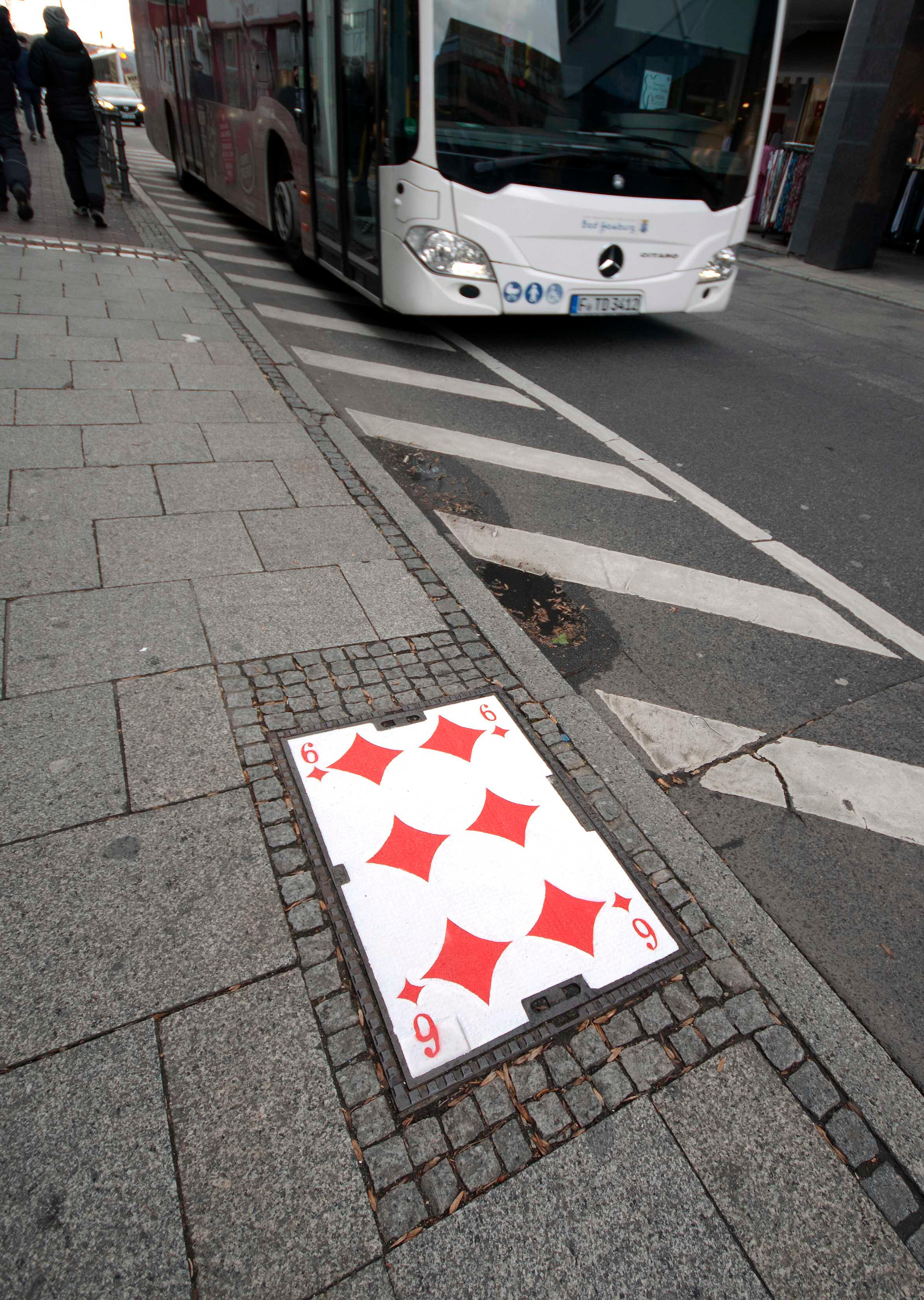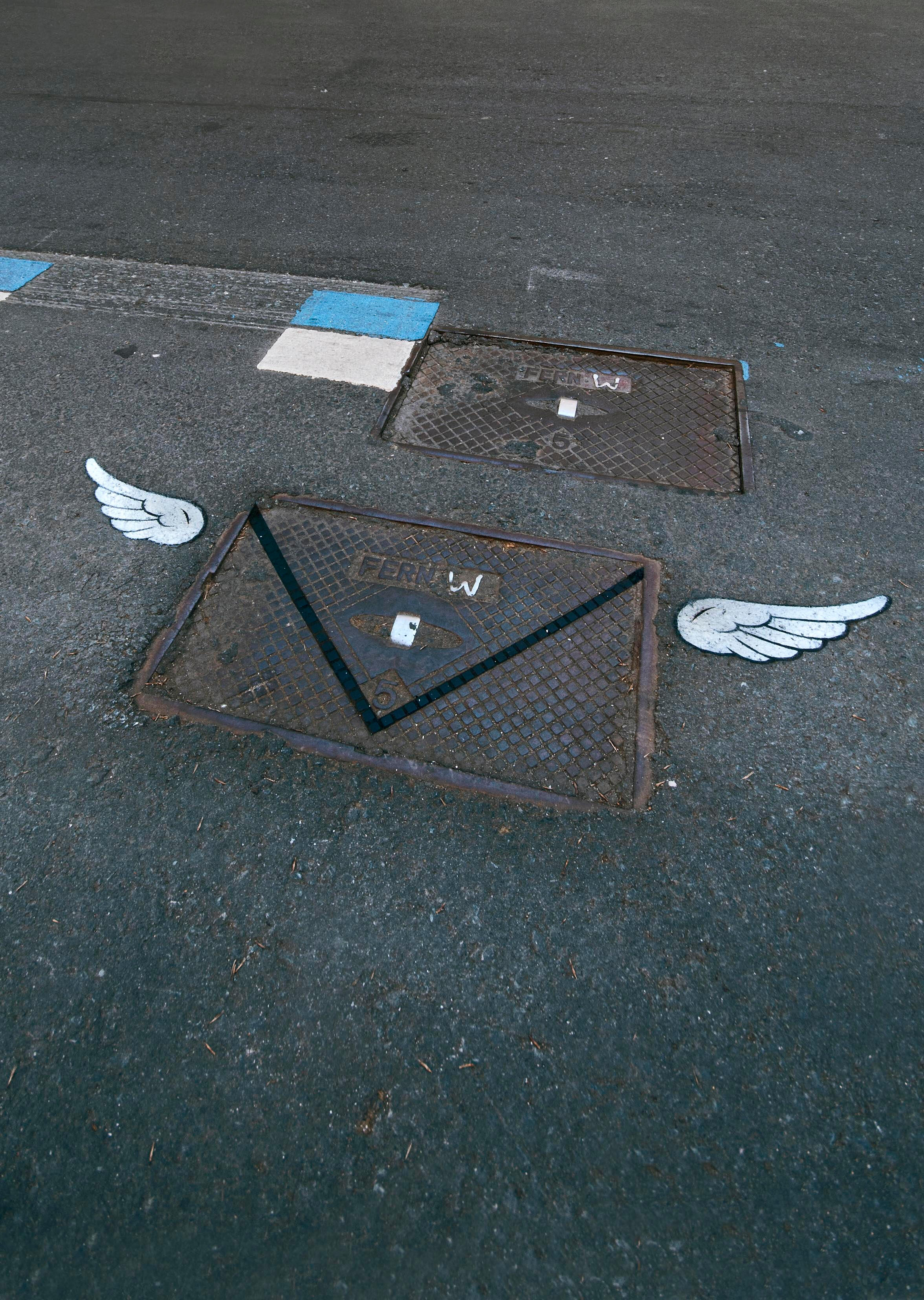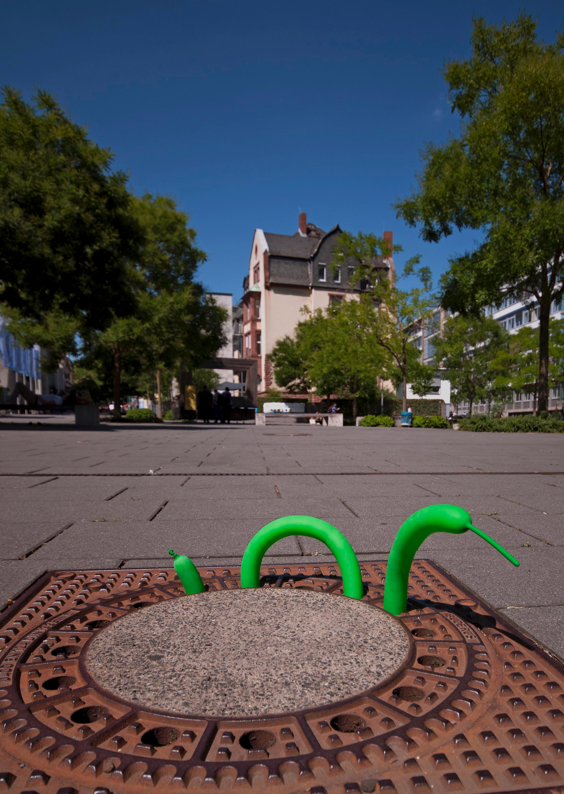 Series of modified manholecovers in public space.