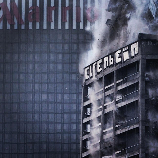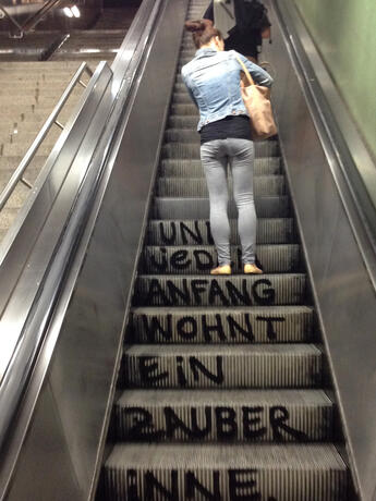 Spraypaint on escalatorsteps